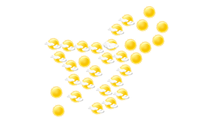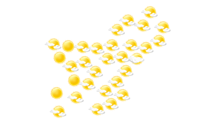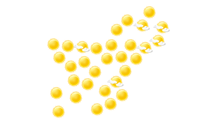 In Sibi strahlt den ganzen Tag die Sonne und die Temperaturen liegen zwischen 29 und 38°C. In der Nacht ist es wolkenlos bei Tiefsttemperaturen von 28°C.