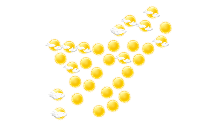 In Sibi gibt es bis zum Nachmittag ungestörten Sonnenschein bei Werten von 13 bis zu 24°C. Am Abend gibt es in Sibi lockere Bewölkung bei Temperaturen von 17 bis 18°C. In der Nacht ist ein Blick auf die Sterne nur vereinzelt bei sonst wolkigem Himmel möglich bei einer Temperatur von 15°C.