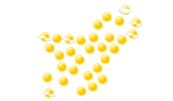 In Sibi bilden sich morgens leichte Wolken und die Temperatur liegt bei 20°C. Im weiteren Tagesverlauf strahlt mittags und auch abends die Sonne bei Werten von 28 bis zu 30°C. In der Nacht gibt es lockere Bewölkung bei Tiefsttemperaturen von 25°C.