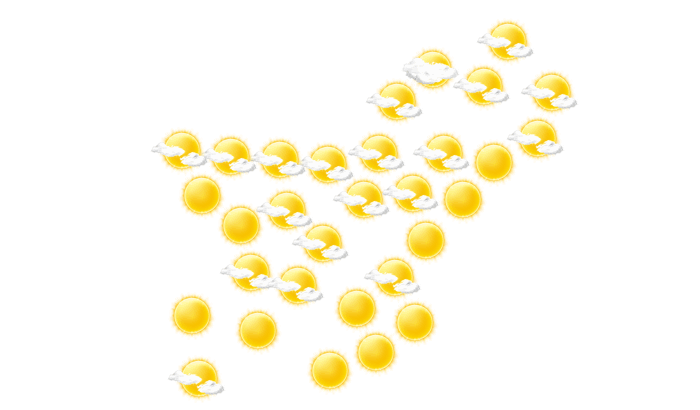 In Sibi ist es morgens wolkig bei Temperaturen von 21°C. Im weiteren Tagesverlauf scheint mittags und auch abends die Sonne bei Temperaturen von 28 bis 30°C. In der Nacht ist es wolkenlos bei Tiefstwerten von 25°C.