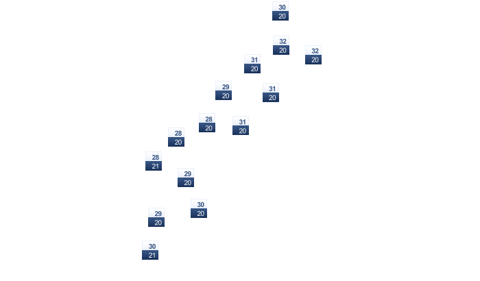 | 19 | 21 | 24 | 30 | 34 | 37 | 39 | 38 | 36 | 33 | 28 | 21 |