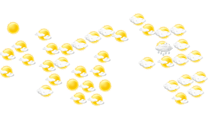 In David scheint am Tag die Sonne bei blauem Himmel und die Temperaturen liegen zwischen 22 und 30°C. In der Nacht gibt es einen wolkenlosen Himmel bei Werten von 22°C.