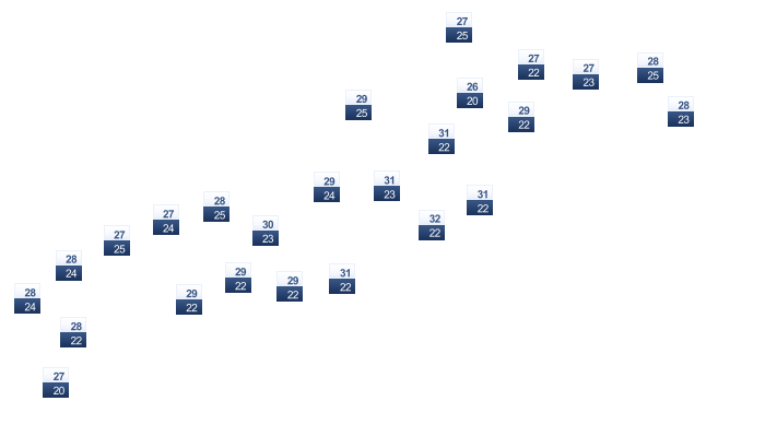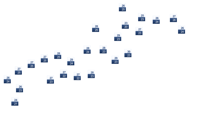 | 22 | 22 | 22 | 23 | 24 | 23 | 23 | 23 | 23 | 23 | 23 | 22 |