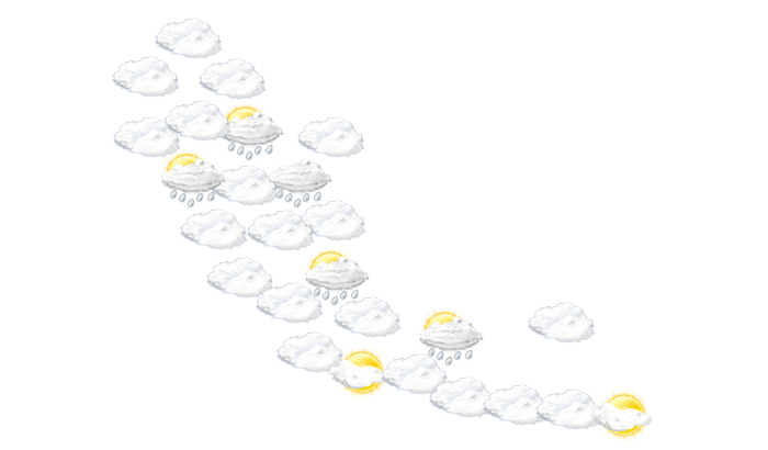 In Gemo wechseln sich den ganzen Tag Wolken und Sonne ab bei Temperaturen von 24 bis 32°C. In der Nacht überwiegt dichte Bewölkung, aber es bleibt trocken bei Werten von 24°C.