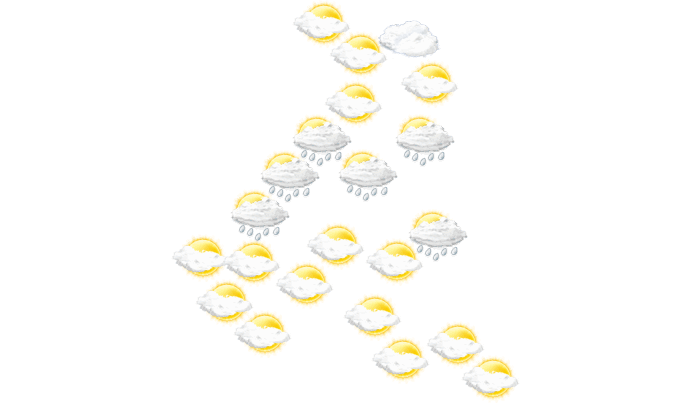In Sambukane gibt es am Morgen nur selten Lücken in der Wolkendecke bei Temperaturen von 11°C. Am Mittag bleibt der Himmel grau und es regnet und die Höchstwerte liegen bei 19°C. Abends überwiegt in Sambukane dichte Bewölkung aber es bleibt trocken bei Temperaturen von 12 bis 13°C. In der Nacht ist es bewölkt, die Sterne sind nur vereinzelt zu sehen bei Tiefsttemperaturen von 11°C.