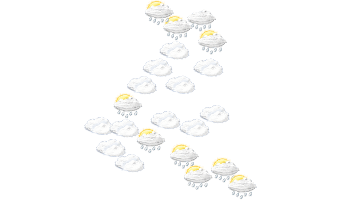 In Ongonma kann sich am Morgen die Sonne nicht durchsetzen und es bleibt bedeckt bei Werten von 13°C. Darüber hinaus sollte vom Nachmittag bis abends der Schirm nicht vergessen werden, da es regnet bei Werten von 15 bis zu 19°C. In der Nacht ist der Himmel bedeckt bei Tiefsttemperaturen von 13°C.