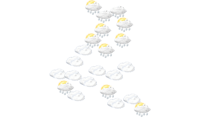 In Sambukane kann sich am Morgen die Sonne nicht durchsetzen und es ist wolkig bei Werten von 12°C. Später sollte der Schirm nicht vergessen werden, da es regnet und die Temperaturen erreichen 18°C. Abends bleibt in Sambukane die Wolkendecke geschlossen bei Temperaturen von 12°C. In der Nacht ist es bedeckt bei Werten von 12°C.