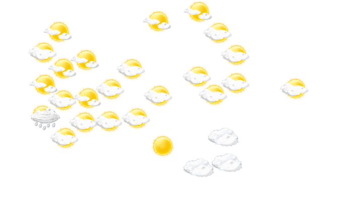 In Ihu ist es tagsüber vielfach wolkig, gebietsweise kann sich auch die Sonne durchsetzen und die Temperaturen liegen zwischen 24 und 28°C. In der Nacht ziehen Wolkenfelder durch bei Tiefsttemperaturen von 24°C.