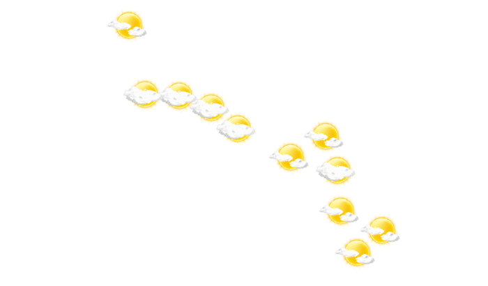 In Kanabu wechseln sich am Morgen Wolken und Sonne ab bei Temperaturen von 26°C. Darüber hinaus gibt es von mittags bis zum Abend hin eine Mischung aus Sonne und Wolken bei Temperaturen von 27 bis 29°C. In der Nacht ist es bewölkt, die Sterne sind nur vereinzelt zu sehen bei Werten von 27°C.
