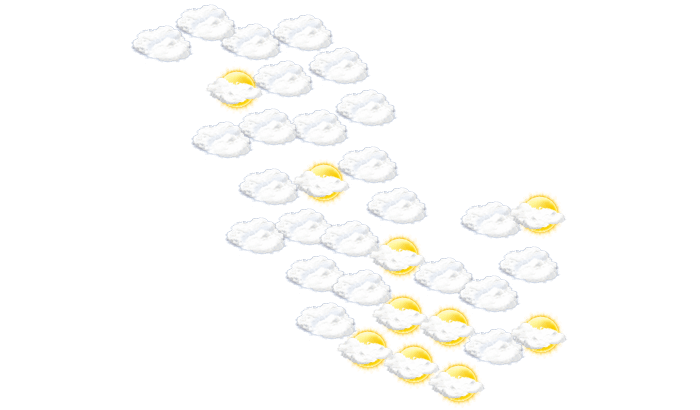 In Saraititi kommt es morgens zu einem Mix aus Sonne und Wolken und die Temperatur liegt bei 23°C. Mittags fällt Regen und die Temperatur erreicht 34°C. Abends ist es in Saraititi bewölkt und die Temperaturen liegen zwischen 24 und 25 Grad. In der Nacht ist es bedeckt bei einer Temperatur von 23°C.