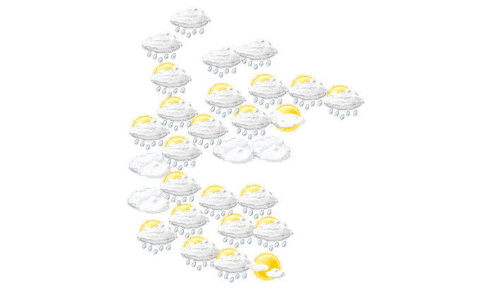 In Sabtei sollte tagsüber der Schirm nicht vergessen werden, da es regnet bei Werten von 21 bis zu 27°C. In der Nacht gibt es nur selten Lücken in der Wolkendecke bei Werten von 21°C.