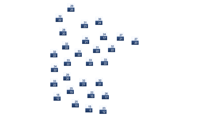 | Temperatur Höchstwerte °C | 26 | 26 | 26 | 26 | 26 | 25 | 25 | 25 | 26 | 26 | 26 | 26 |