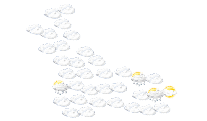 In Pororo ist am Tag der Himmel bedeckt, die Sonne ist nicht zu sehen bei Temperaturen von 13 bis 18°C. In der Nacht bleibt es bedeckt bei Tiefsttemperaturen von 13°C.