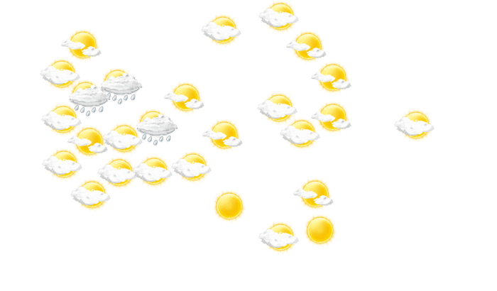 In Gavaiva scheint morgens die Sonne bei Temperaturen von 26°C. Mittags stören nur einzelne Wolken den sonst blauen Himmel bei Höchsttemperaturen bis zu 29°C. Am Abend ist es in Gavaiva bewölkt und die Temperaturen liegen zwischen 28 und 29 Grad. In der Nacht sind anhaltende Regen-Schauer zu erwarten bei Werten von 26°C.