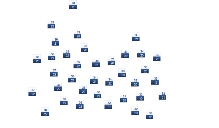 | 33 | 33 | 32 | 28 | 25 | 23 | 23 | 24 | 26 | 29 | 31 | 32 |