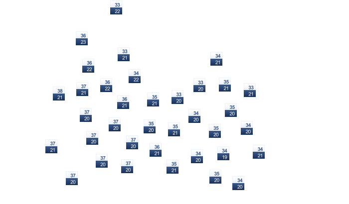 | 23 | 22 | 21 | 19 | 16 | 14 | 14 | 14 | 16 | 18 | 20 | 22 |