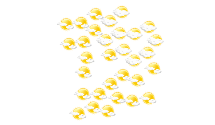In Chore bilden sich morgens leichte Wolken bei Temperaturen von 21°C. Im weiteren Tagesverlauf ist es vom Nachmittag bis abends wolkig bei Werten von 24 bis zu 34°C. Nachts ist es bedeckt bei einer Temperatur von 22°C.