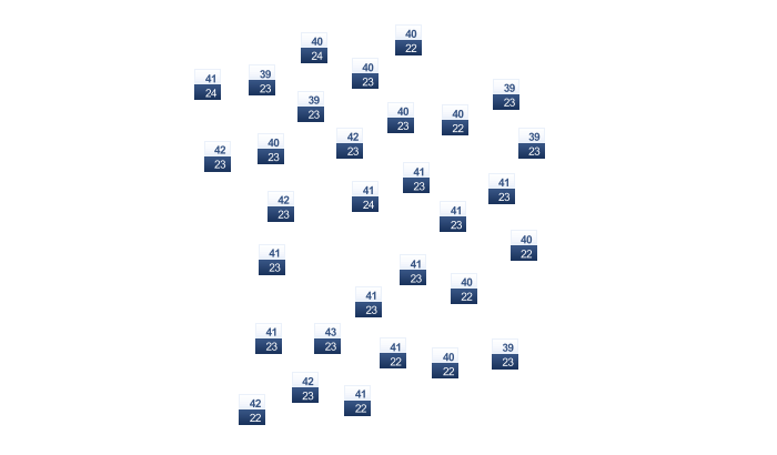 | 23 | 22 | 21 | 19 | 16 | 14 | 14 | 14 | 16 | 18 | 20 | 22 |