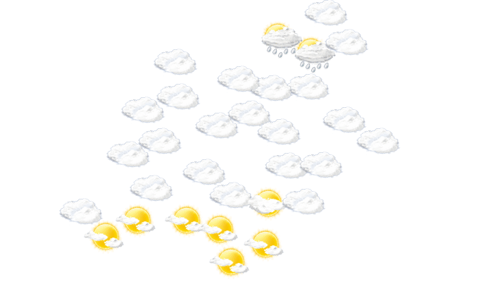 In Yhú kann sich tagsüber die Sonne nicht durchsetzen und es bleibt bedeckt bei Temperaturen von 13 bis 16°C. In der Nacht ist es bewölkt, die Sterne sind nur vereinzelt zu sehen bei Tiefstwerten von 13°C.