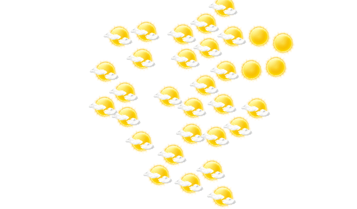 In Tobatí bilden sich von Tagesbeginn bis zum Nachmittag leichte Wolken bei Temperaturen von 22 bis 39°C. Abends sind in Tobatí Teile des Himmels mit Wolken bedeckt bei Werten von 26 bis zu 32°C. Nachts ist es leicht bewölkt bei einer Temperatur von 25°C.