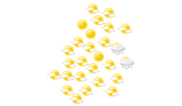 In Yaguarón gibt es am Morgen keine Wolken, die Sonne scheint bei Werten von 22°C. Im weiteren Tagesverlauf gibt es überwiegend blauen Himmel mit vereinzelten Wolken bei Höchstwerten von 33°C. Abends gibt es in Yaguarón keine Wolken bei Temperaturen von 24 bis 26°C. Nachts gibt es einen wolkenlosen Himmel bei Werten von 22°C.
