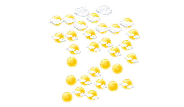 In Chore ist es morgens wolkenlos und die Temperatur liegt bei 24°C. Im weiteren Tagesverlauf bilden sich vereinzelt Wolken und die Temperatur steigt auf 34°C. Am Abend überwiegt in Chore dichte Bewölkung aber es bleibt trocken bei Werten von 27 bis zu 29°C. In der Nacht ist es locker bewölkt bei Tiefsttemperaturen von 24°C.