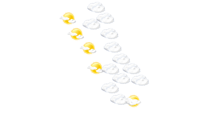 In Breña bilden sich von Tagesbeginn bis zum Nachmittag leichte Wolken und die Temperaturen liegen zwischen 22 und 26°C. Abends gibt es in Breña nur selten Lücken in der Wolkendecke bei Temperaturen von 22°C. Nachts sind Teile des Himmels mit Wolken bedeckt und die Temperatur sinkt auf 21°C.