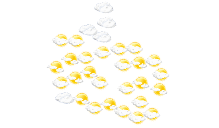 In Iberia kann sich morgens die Sonne nicht durchsetzen und es bleibt bedeckt und die Temperatur liegt bei 21°C. Am Mittag ist es teils wolkig und teils heiter bei Höchstwerten von 33°C. Am Abend ziehen in Iberia Wolkenfelder durch und die Temperaturen liegen zwischen 23 und 24 Grad. In der Nacht ist es wolkig bei Tiefsttemperaturen von 21°C.