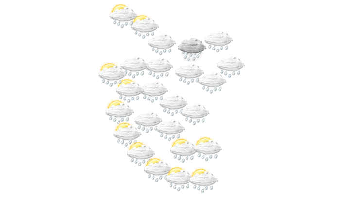 In Rioja fällt am Tag Regen bei Werten von 18 bis zu 24°C. Nachts sind anhaltende Regen-Schauer zu erwarten bei Tiefstwerten von 18°C.