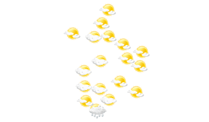 In Jolo ist es am Morgen überwiegend dicht bewölkt bei Werten von 25°C. Mittags verdecken einzelne Wolken die Sonne und die Temperaturen erreichen 28°C. Abends ist es in Jolo wolkenlos bei Werten von 26 bis zu 27°C. Nachts gibt es keine Wolken und die Sterne sind klar zu erkennen bei Werten von 26°C.