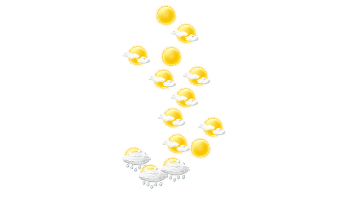In Santiago bilden sich morgens vereinzelt Wolken bei Temperaturen von 22°C. Im weiteren Tagesverlauf bleibt der Himmel am Nachmittag und am Abend grau und es regnet bei Temperaturen von 24 bis 30°C. Nachts gibt es nur selten Lücken in der Wolkendecke bei einer Temperatur von 23°C.