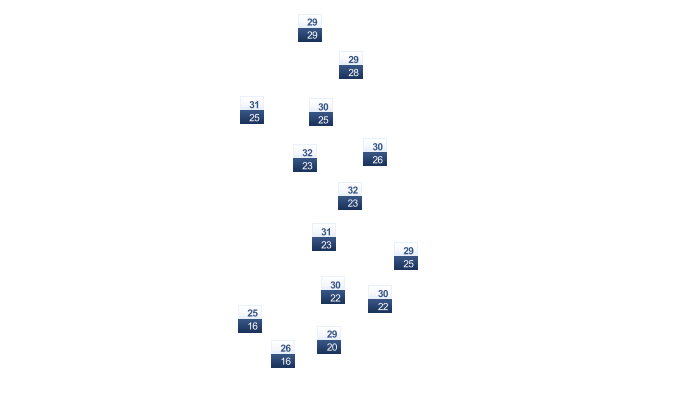 22 | 23 | 24 | 25 | 25 | 23 | 23 | 22 | 23 | 23 | 23 | 23 |
