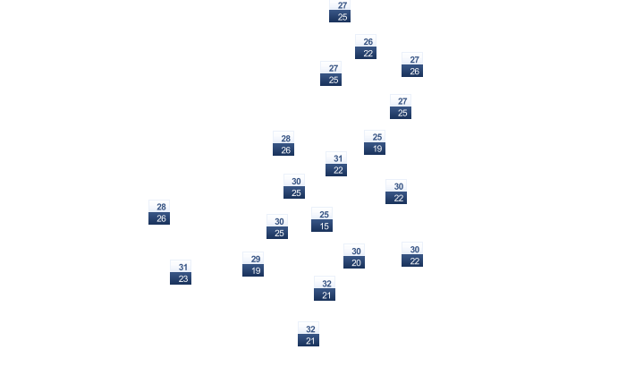 | 22 | 23 | 24 | 25 | 25 | 23 | 23 | 22 | 23 | 23 | 23 | 23 |