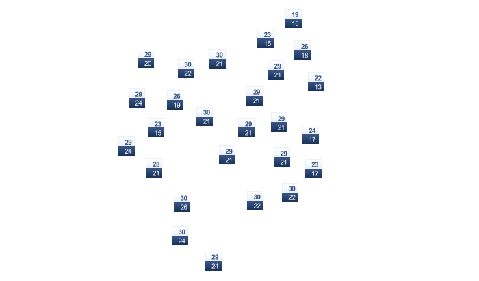 | 22 | 23 | 24 | 25 | 25 | 23 | 23 | 22 | 23 | 23 | 23 | 23 |
