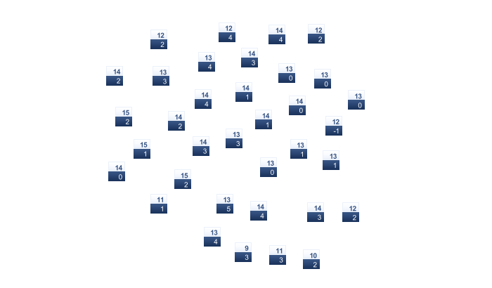 | -8 | -7 | -3 | 2 | 7 | 10 | 12 | 11 | 8 | 4 | 0 | -5 |