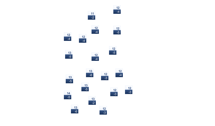 | -8 | -7 | -3 | 2 | 7 | 10 | 12 | 11 | 8 | 4 | 0 | -5 |