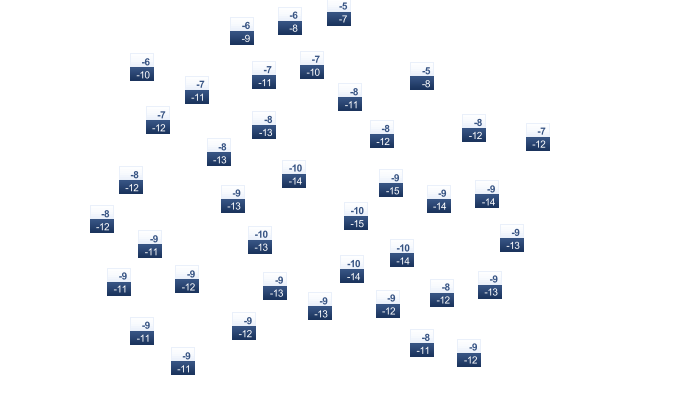 | -2 | -1 | 4 | 12 | 18 | 22 | 23 | 22 | 17 | 12 | 5 | 0 |