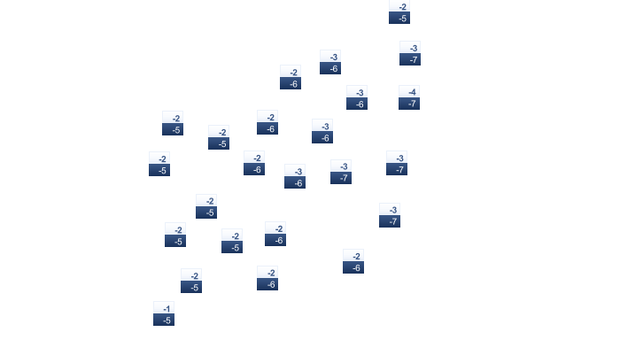 | -2 | -1 | 4 | 12 | 18 | 22 | 23 | 22 | 17 | 12 | 5 | 0 |