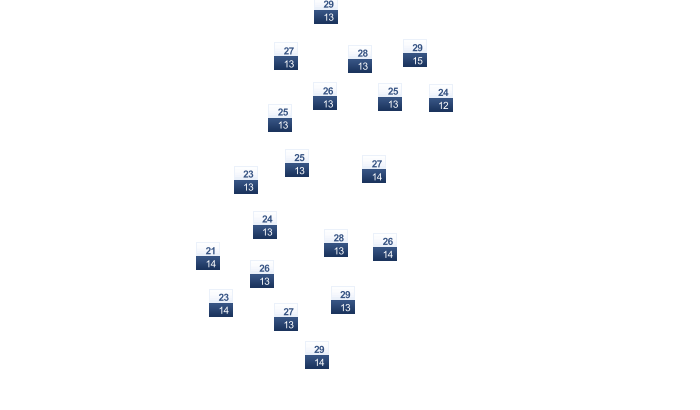 15 | 17 | 18 | 20 | 25 | 28 | 32 | 32 | 29 | 24 | 19 | 17 |