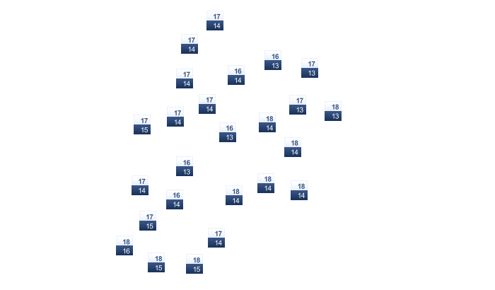 | 7 | 8 | 9 | 11 | 14 | 17 | 19 | 20 | 18 | 15 | 11 | 9 |