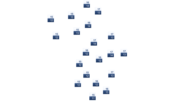 | 7 | 8 | 9 | 11 | 14 | 17 | 19 | 20 | 18 | 15 | 11 | 9 |