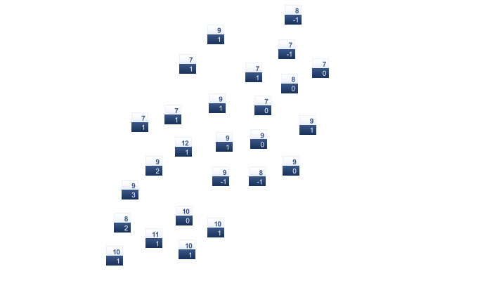 | 7 | 8 | 9 | 11 | 14 | 17 | 19 | 20 | 18 | 15 | 11 | 9 |