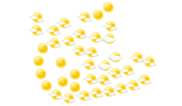 In Almira bilden sich am Morgen leichte Wolken bei Temperaturen von 23°C. Im Laufe des Mittags gibt es strahlenden Sonnenschein und die Höchstwerte liegen bei 29°C. Am Abend bilden sich in Almira leichte Wolken und die Temperaturen liegen zwischen 23 und 24 Grad. Nachts ist es bewölkt, die Sterne sind nur vereinzelt zu sehen bei Tiefsttemperaturen von 22°C.