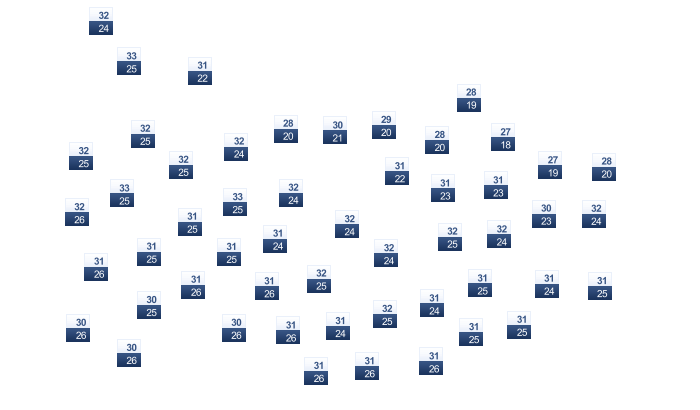 28 | 29 | 29 | 30 | 31 | 31 | 31 | 32 | 32 | 31 | 30 | 29 |