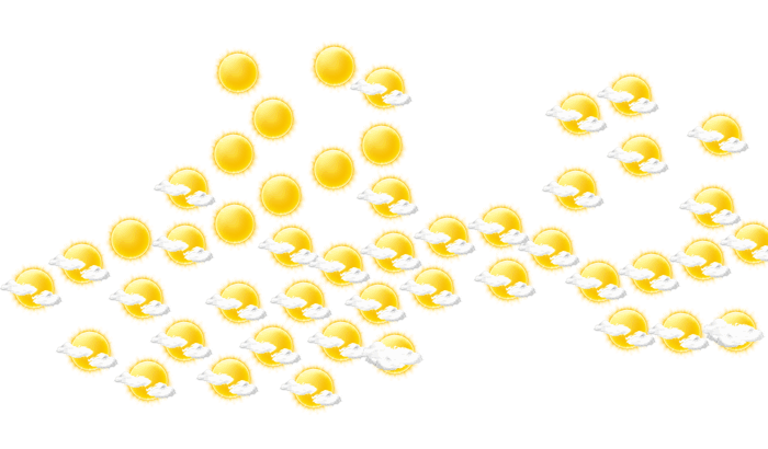 In Villa Carolina stören tagsüber nur einzelne Wolken den sonst blauen Himmel bei Werten von 25 bis zu 30°C. Nachts ist es locker bewölkt bei Tiefsttemperaturen von 25°C.