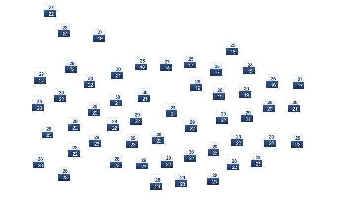 | 28 | 29 | 29 | 30 | 31 | 31 | 31 | 32 | 32 | 31 | 30 | 29 |