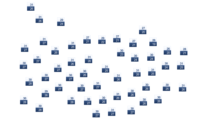 28 | 29 | 29 | 30 | 31 | 31 | 31 | 32 | 32 | 31 | 30 | 29 |