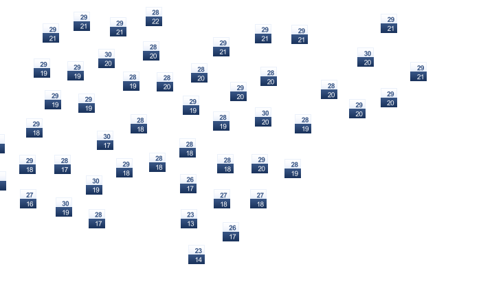 | 28 | 29 | 29 | 30 | 31 | 31 | 31 | 32 | 32 | 31 | 30 | 29 |