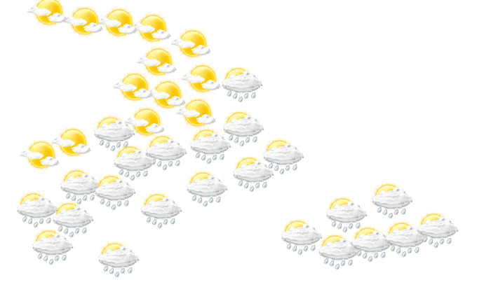 In El Mangó sollte von morgens bis zum Nachmittag der Schirm nicht vergessen werden, da es regnet und die Temperaturen liegen zwischen 24 und 30°C. Abends ist es in El Mangó locker bewölkt bei Temperaturen von 24°C. Nachts ist es wolkig bei Tiefsttemperaturen von 24°C.