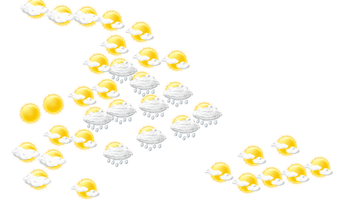 In El Mangó zeigt sich bis zum Nachmittag die Sonne zwischen einzelnen Wolken und die Temperaturen liegen zwischen 22 und 28°C. Am Abend gibt es in El Mangó nur selten Lücken in der Wolkendecke und die Temperatur liegt bei 22°C. Nachts gibt es lockere Bewölkung bei Tiefsttemperaturen von 22°C.